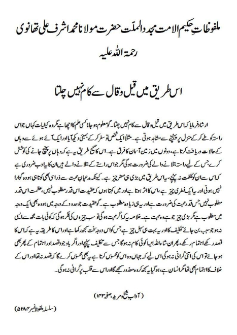 اس طریق میں قیل و قال سے کام نہیں چلتا