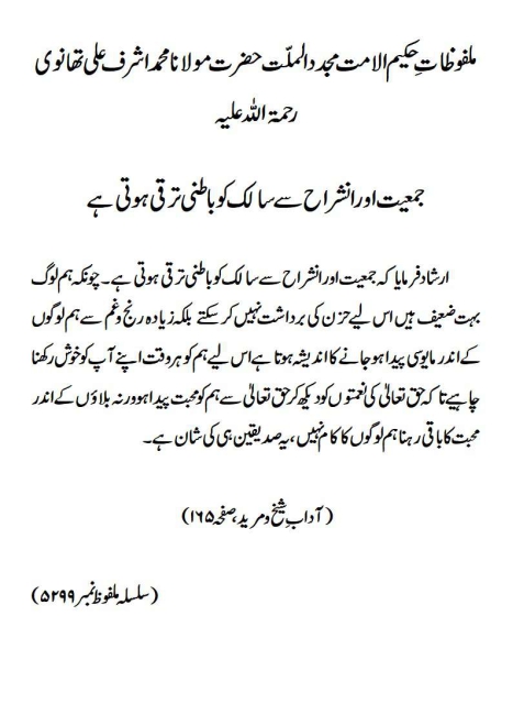 جمعیت اور انشراح سے سالک کو باطنی ترقی ہوتی ہے