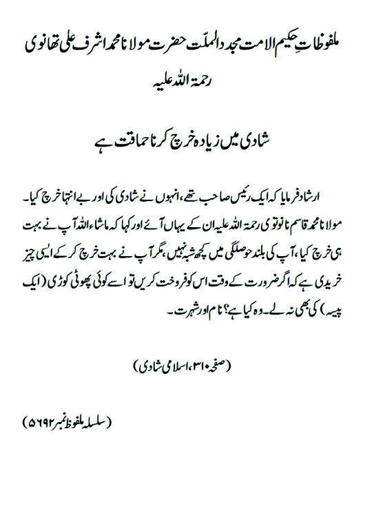 شادی میں زیادہ خرچ کرنا حماقت ہے