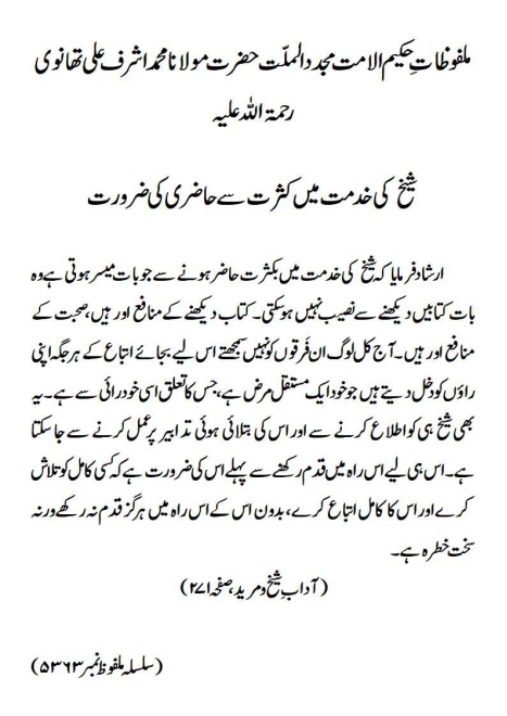 شیخ کی خدمت میں کثرت سے حاضری کی ضرورت